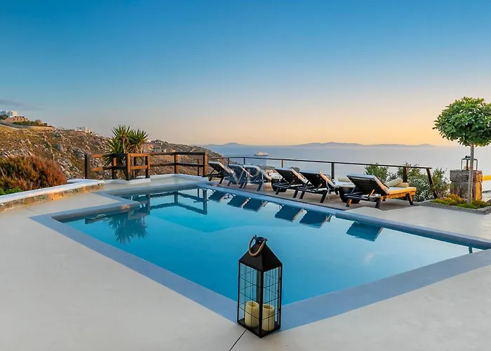 A Cycladic Paradise- Stunning Views And Relaxation körülbelül egy 15 perces autóútra van a Míkonosz Régészeti Múzeum területétől, ahol szálláshelyet kínál ingyenes privát parkolóval, magán úszómedencével és kerttel. A Cycladic Paradise- Stunning Views And Relaxation ingyenes Wifivel, klímaberendezéssel és füstérzékelőkkel ellátott szobákat kínál a kényelmes tartózkodás érdekében.